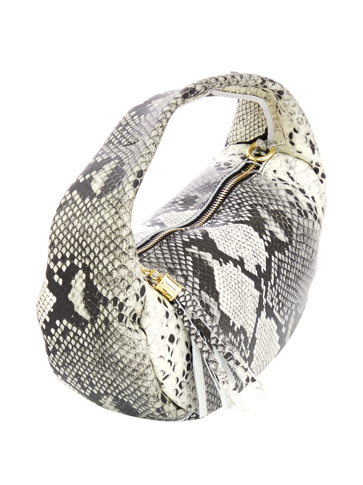 Эта сумка среднего размера в форме полумесяца украшена эффектным узором в виде змеи, воплощающим современный стиль. Верхняя ручка обеспечивает универсальность переноски, а застежка-молния с брелком-кисточкой добавляет стиль и функциональность. Текстурированная поверхность сумки повышает как визуальную привлекательность, так и тактильные качества, делая ее подходящей для различных случаев.