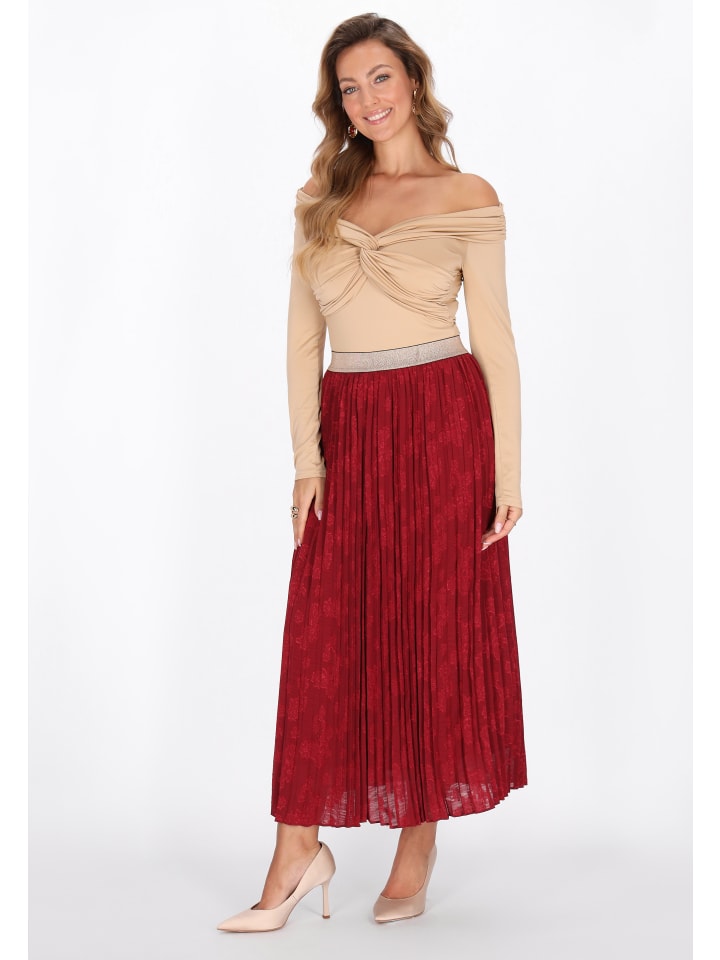 - плиссированная макси-юбка прямого кроя с высокой талией и резинкой