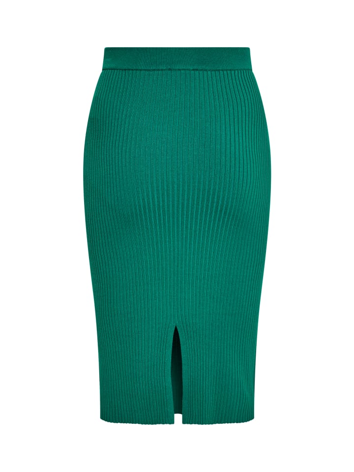 Представляем изысканную юбку длиной до колена с ребристой текстурой, которая излучает элегантность. Юбка из эластичного трикотажного полотна с приталенным поясом изящно сидит на талии и сужается к низу, создавая классический силуэт карандаш. Разрез сзади добавляет функциональности. Вертикальный рубчик добавляет нотку изысканности. Эта модель, разработанная совместно с NAEMI, сочетает в себе классический стиль и современный дизайн.