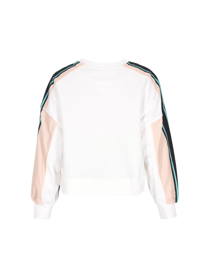 Представляем стильную толстовку свободного кроя с круглым вырезом для создания непринужденного, но модного образа. Длинные рукава с уникальным узором, спущенная линия плеча и ребристый подол. Мягкий и комфортный трикотаж идеально подходит для повседневной носки. Полоски на рукавах добавляют спортивный штрих. Толстовка идеально подходит для различных случаев. Она входит в коллекцию Fashion Look.