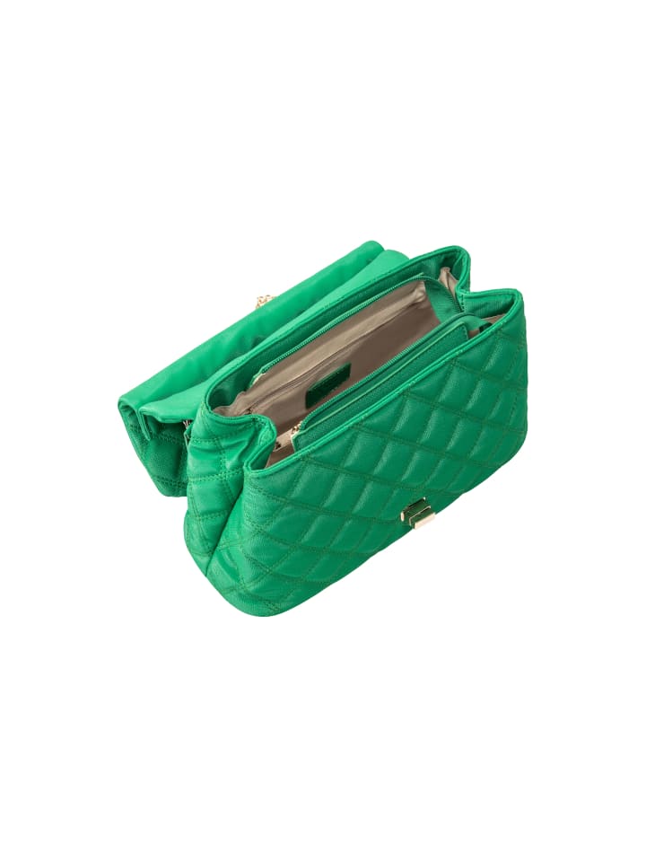 Представляем сумку через плечо среднего размера с клапаном, застегивающимся на поворотный замок для дополнительной безопасности. Эта стильная и элегантная модель из экокожи дополнена цепочным ремешком и металлическим логотипом. Стеганый дизайн добавляет текстуру, а структурированная форма и плоское дно обеспечивают устойчивость. Внутренний карман на молнии обеспечивает практичность и элегантность.