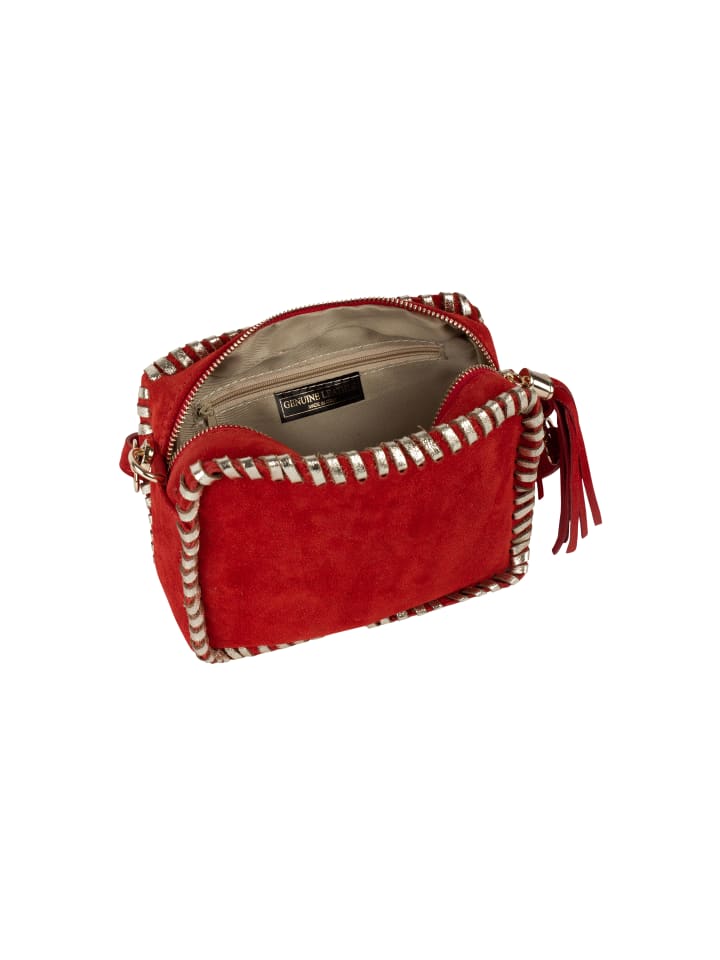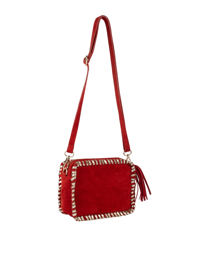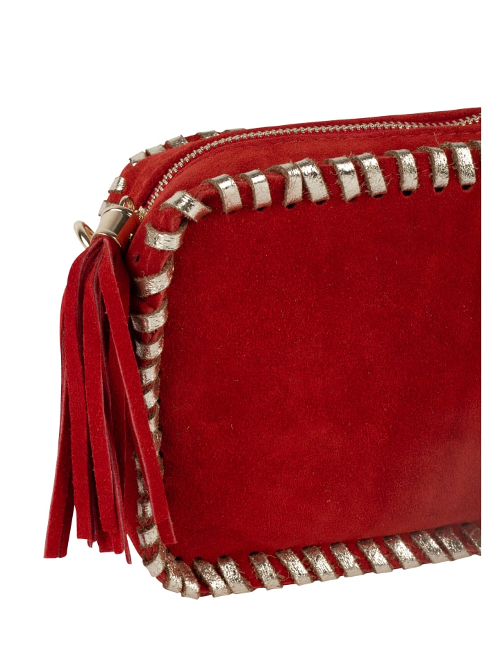 Эта небольшая сумка через плечо от FELIPA станет вашим спутником на каждый день, в любое время суток. Сделано в Италии, она очаровывает своей мягкой замшей и сдержанным силуэтом, а золотистая отделка добавляет ей изюминку. Благодаря ей, а также элегантной кожаной кисточке, этот аксессуар можно носить как днем, так и вечером. Регулируемый и съемный плечевой ремень позволяет носить его по-разному. Размеры: 21 см x 15 см x 6 см (Ш x В x Г)