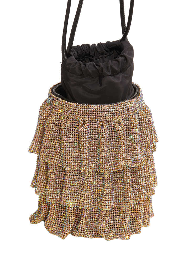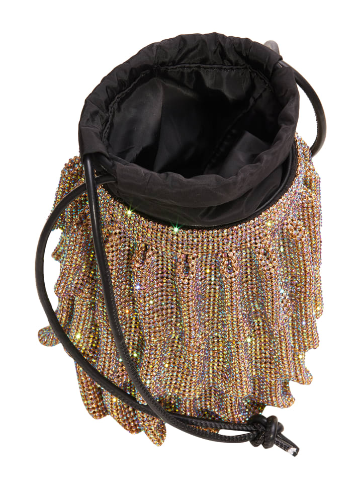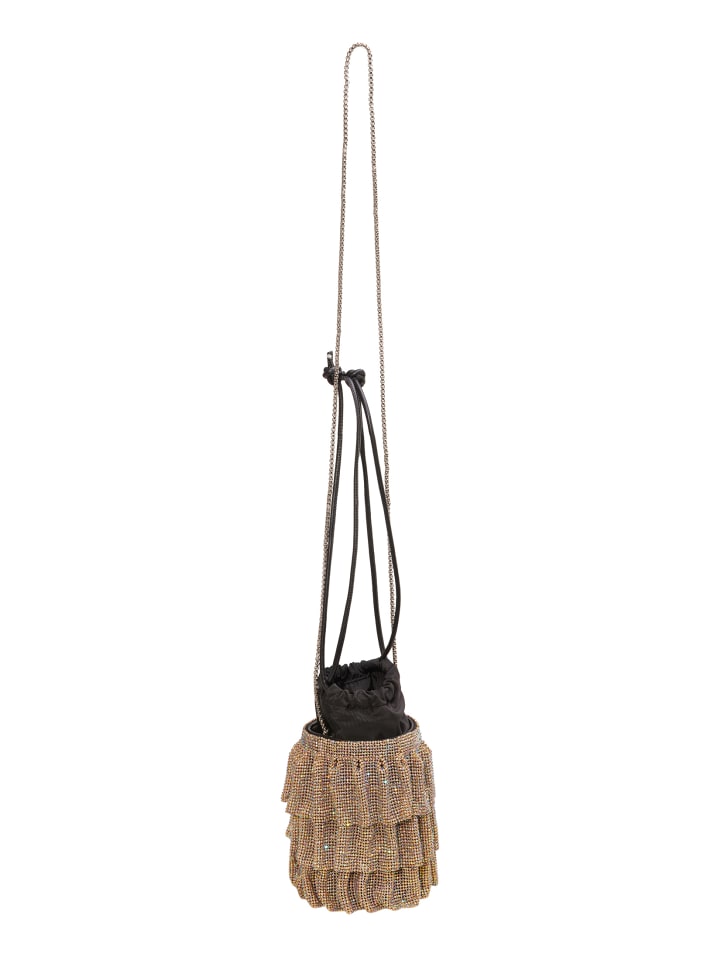 Представляем наши новейшие модели сумок с уникальной многослойностью и текстурой. Верхняя часть выполнена из гладкого материала, похожего на ткань, и затягивается сверху шнурком. Нижняя часть имеет многоуровневый дизайн с изысканной отделкой бисером для дополнительной фактуры. Идеально подходит для придания индивидуальности любому стильному наряду или особому случаю.