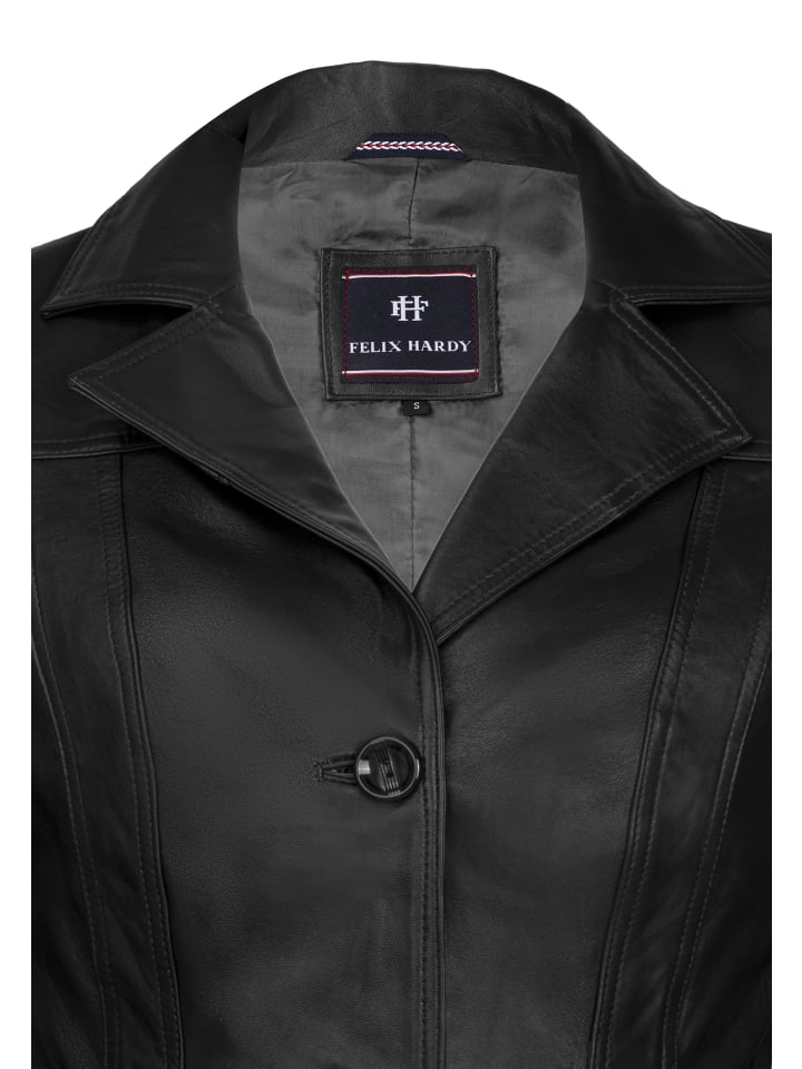 Элегантность с акцентом - женская кожаная куртка Felix Hardy с поясом и планкой на пуговицах переосмысливает вневременную женственность благодаря эффектному дизайну. Изготовленная из высококачественной искусственной кожи с матовой, мягкой поверхностью, она впечатляет структурированным силуэтом, застежкой на пуговицы спереди и ремнем, который подчеркивает фигуру. Четкий крой и чистые линии создают мощный, но элегантный образ - идеальный вариант для городской изысканности и стильной простоты. Независимо от того, надето ли оно поверх элегантного платья или в сочетании с джинсами и ботинками - эта эффектная вещь легко привлечет внимание. Уверенность. Классика. Несомненно элегантная.
