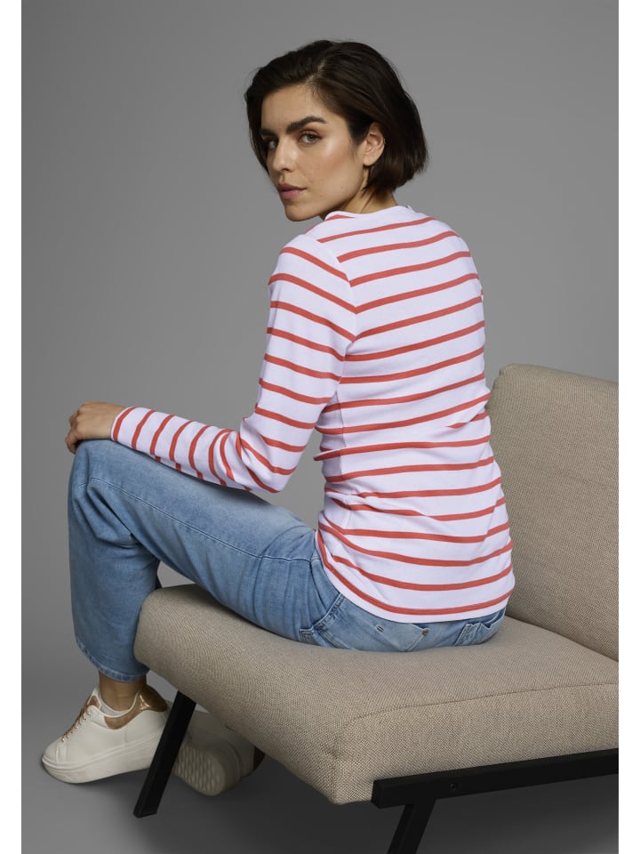 В полоску и однотонная. С круглым вырезом, отделанным тонкой окантовкой. Мягкий трикотаж.