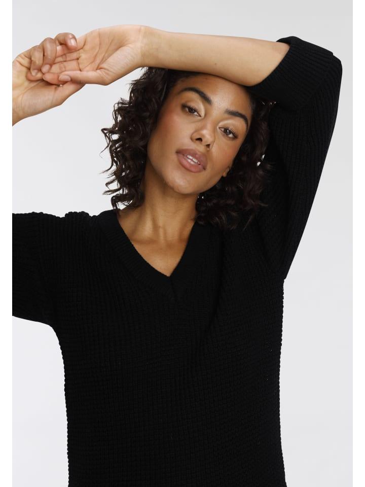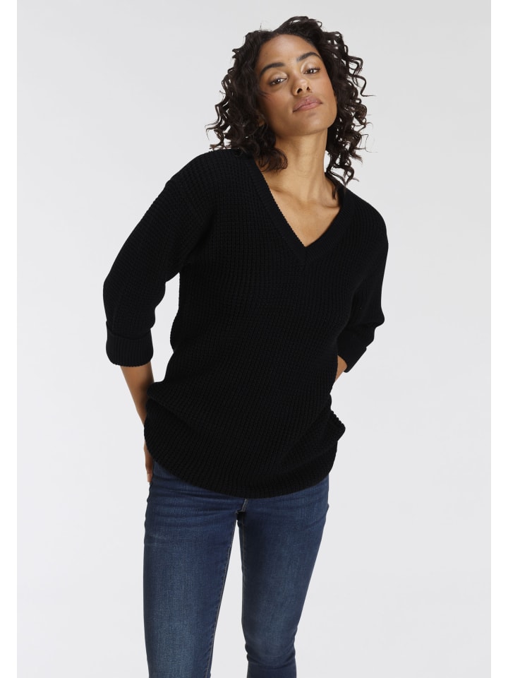 Универсальный женский свитер с V-образным вырезом от бренда Flashlights. Широкий, прикрывающий ягодицы крой. Рукава длиной 3/4. Трикотажный верх согревает и обеспечивает высокий уровень комфорта.