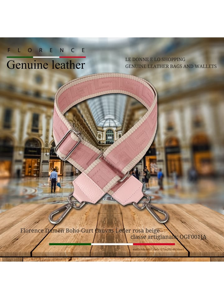 Этот элегантный и стильный аксессуар для женщин от бренда Florence. Красивый розово-бежевый ремешок для переноски изготовлен из парусиновой кожи и застегивается на кнопку.