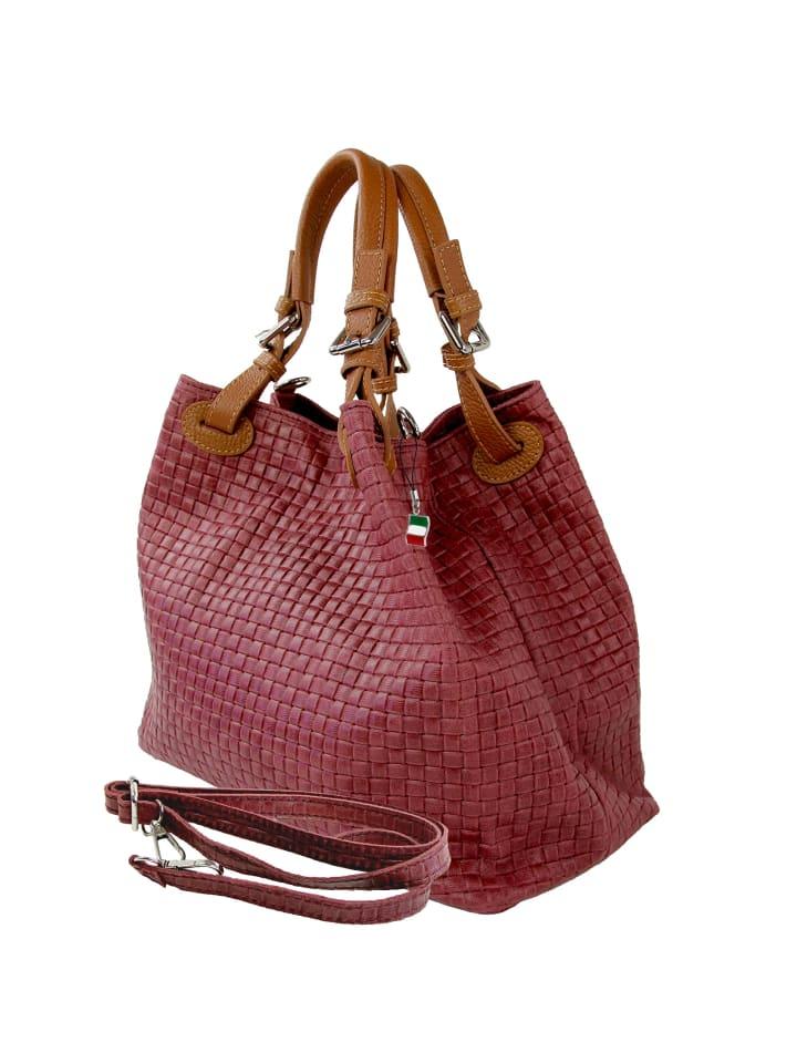 Женская кожаная сумка, темно-красная, бордовая, плетеный узор, Florence