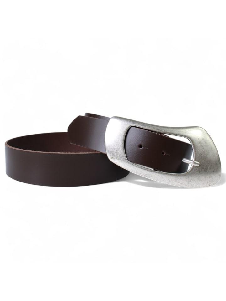 Модный кожаный ремень с очень крупной изогнутой пряжкой. Он отлично сочетается с расклешенными джинсами в стиле 70-х. Его также можно носить как поясной ремень.