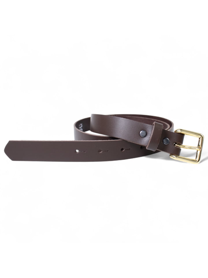 Узкий женский ремень с красивой, блестящей золотой квадратной пряжкой, которая застегивается на ремешке двумя заклепками-шпильками. Кожаный ремешок изготовлен из натуральной коровьей кожи. Универсальный и вневременной ремень для многих случаев, будь то с джинсами, платьем, юбкой и т. д.