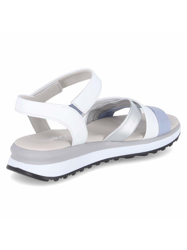 Эти белые сандалии из высококачественной гладкой кожи от GABOR впечатляют стильным спортивным дизайном. Ремешки на липучках с эластичными вставками позволяют индивидуально регулировать посадку и обеспечивают комфортную посадку. Передние ремешки серебристо-синего цвета добавляют изящные цветовые акценты и придают модели современный вид. Мягкая кожаная стелька обеспечивает удобную посадку и оптимальную поддержку стопы. Гибкая профилированная подошва со спортивным дизайном обеспечивает надежное сцепление и комфорт, идеально подходит для повседневной носки или длительных прогулок. Независимо от того, сочетаются ли они с легкими летними брюками и блузкой или надеваются с воздушным платьем, эти сандалии предлагают успешное сочетание модного стиля и высокого комфорта при ношении и являются идеальным компаньоном для теплых дней.