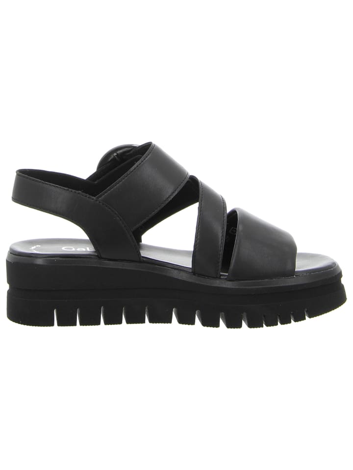 Эти черные босоножки на танкетке от Gabor - универсальная и стильная женская обувь для теплых дней. Высококачественная кожа впечатляет изысканным черным цветом и элегантной отделкой. Пряжка на ремешке над подъемом ноги добавляет дополнительный визуальный акцент. Застежка-липучка обеспечивает надежную посадку. Мягкая стелька обеспечивает комфорт. С этими черными босоножками на танкетке от Gabor вы будете носить стильную женскую обувь как в городе, так и на отдыхе.