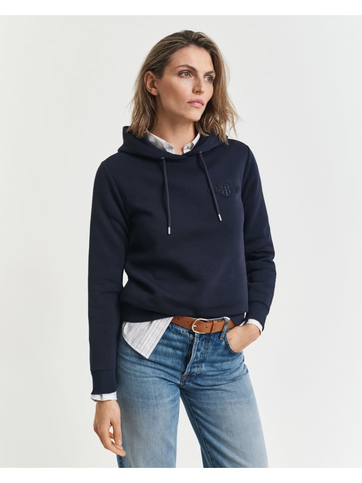Эта толстовка прямого кроя с капюшоном на шнурке идеально подходит для повседневного образа. Ребристые манжеты и нижний край обеспечивают удобную посадку. Графическая вышивка GANT на груди придает худи спортивный вид. Стирайте с вещами похожих цветов и выворачивайте наизнанку для сохранения качества.