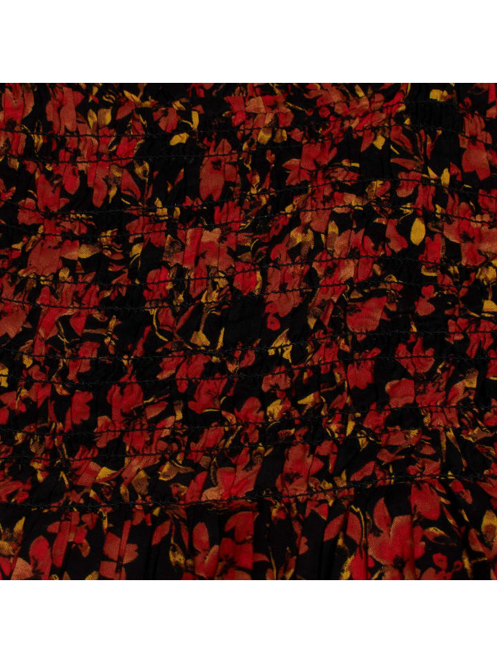 Цветочный принт ярких тонов по всей поверхности.