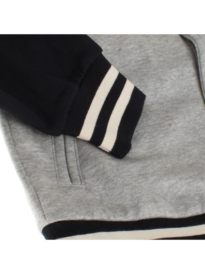 Контрастные полосы на манжетах и подоле подчеркивают традиционный студенческий стиль.