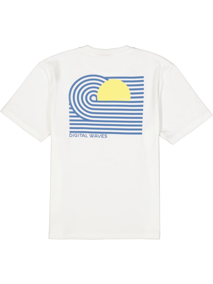 Футболки Garcia для мальчиков-подростков в светло-шалфейном и бежево-белом цветах сочетают в себе экологичные материалы и стильный дизайн. Изготовленные из 70% хлопка и 30% переработанного хлопка, они экологичны и комфортны. Современный принт на спине с цифровым рисунком волн придает им модный и молодежный вид. Благодаря классическому крою и круглому вырезу они универсальны для школы, отдыха и летних мероприятий и легко сочетаются с разным низом и обувью.