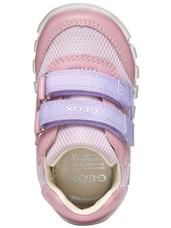 С этими стильными кроссовками Geox ваш ребенок гарантированно станет звездой детской площадки. Стильные накладки особенно привлекают внимание. Благодаря застежке-липучке надевать и снимать кроссовки легко и просто. Съемная стелька с мягкой подкладкой, антибактериальным покрытием и амортизацией. Резиновая подошва перфорирована и оснащена специальной микропористой мембраной, которая обеспечивает естественное потоотделение и предотвращает проникновение воды.