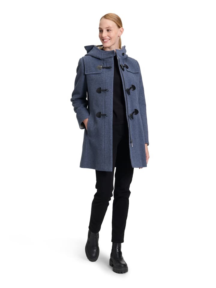 Классический дафлкот впечатляет современной интерпретацией: мягкий шерстяной велюр, слегка приталенный крой и эффектные кокетки на плечах. Капюшон украшен контрастным клетчатым узором на внутренней стороне. Фирменные застежки-кнопки, молния и практичные карманы в швах дополняют дизайн. Однотонный, современный must-have для стильных повседневных образов.