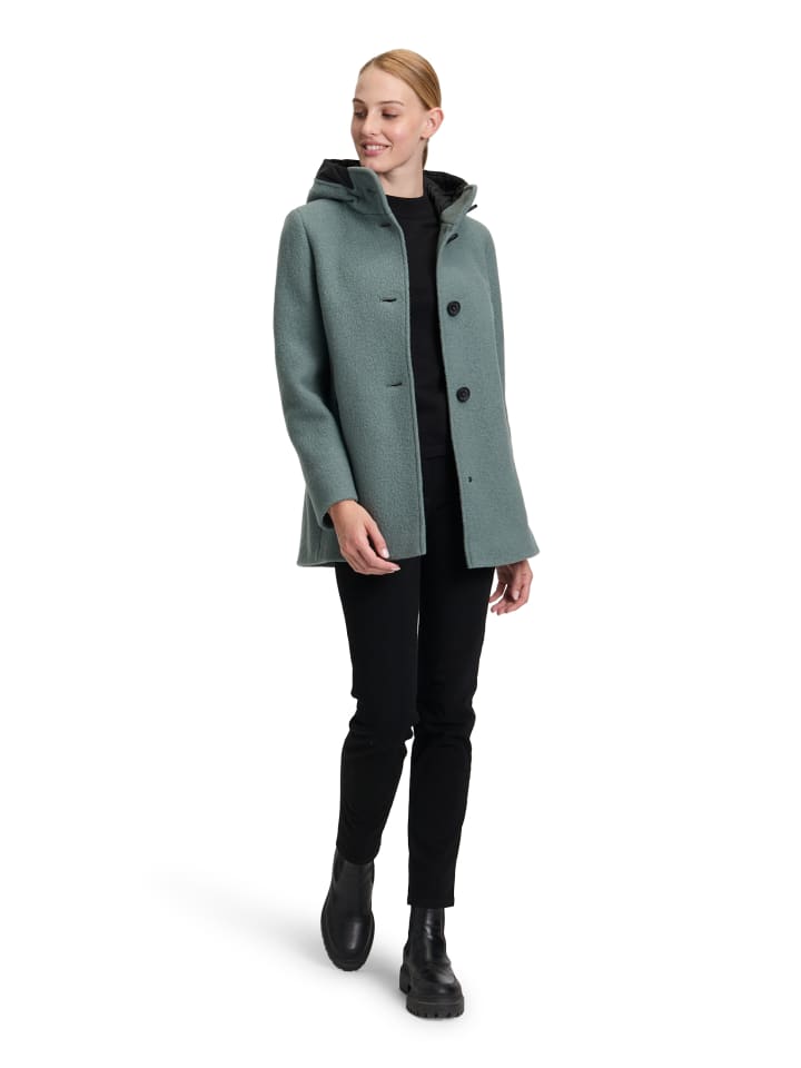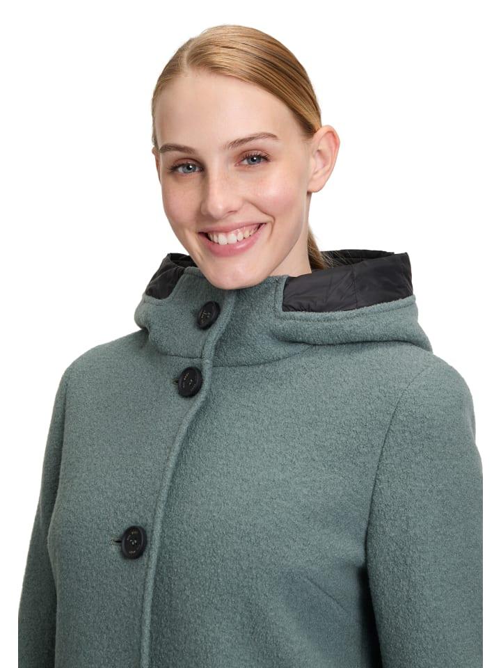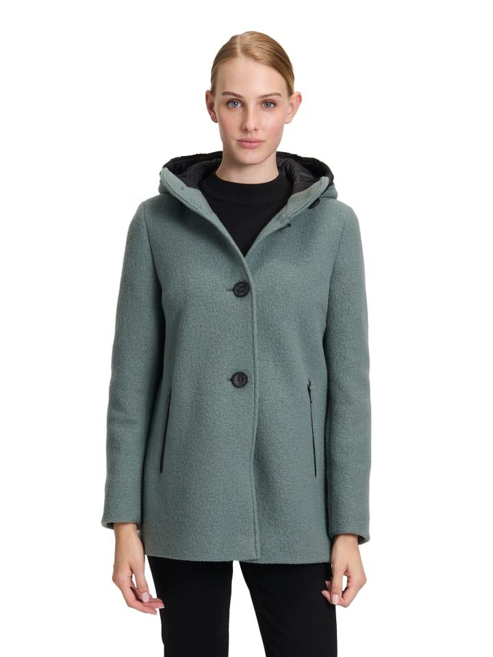 Стильная и непринужденная! Эта спортивная шерстяная куртка из 100% вареной натуральной шерсти сочетает в себе высококачественный шерстяной флис и стеганый полиамид с легким цветовым контрастом. Куртка имеет большой капюшон, стеганую подкладку сзади и спортивные карманы на молнии. Застегивается на планку с пуговицами. Прочный, свободный, спортивный и теплый - незаменимая вещь для повседневных образов.