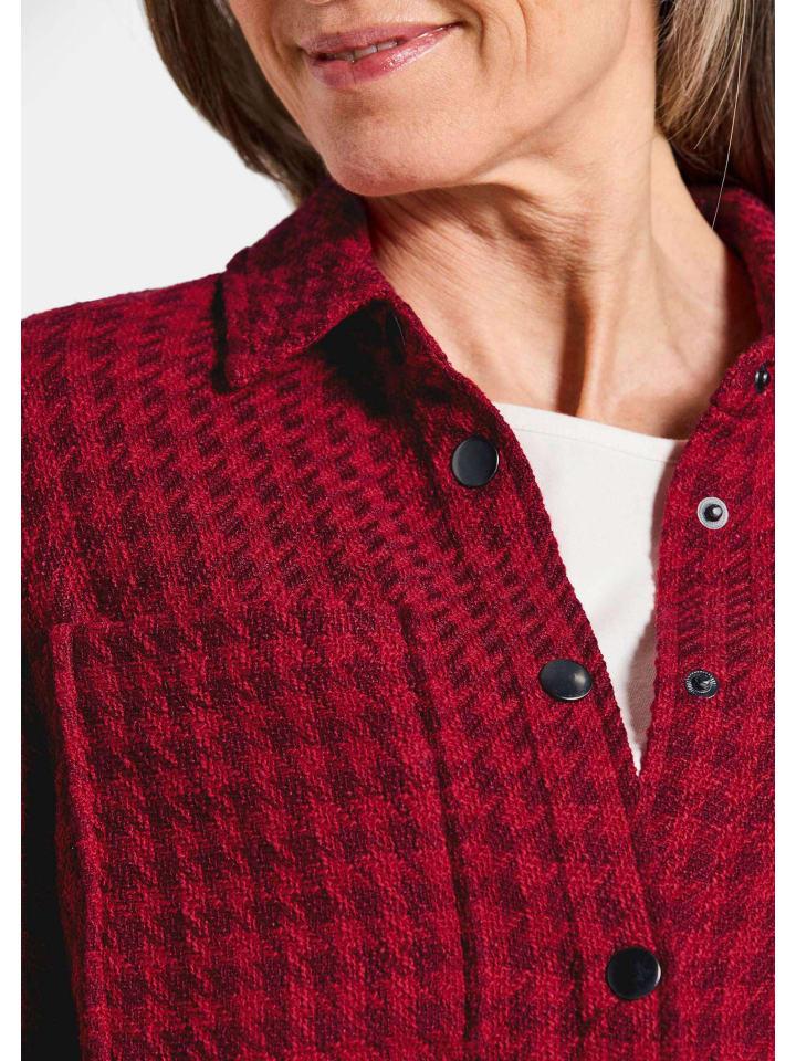 Куртка-рубашка из модной ткани букле, красиво подчеркнутой тонким узором гусиная лапка. Непринужденный фасон без подкладки идеально подходит в качестве легкого слоя! Отложной воротник, два накладных нагрудных кармана и металлические кнопки. Длинные рукава с манжетами, разрезом и кнопкой. Длина: около 76 см для размера 46, около 72 см для размера 23.