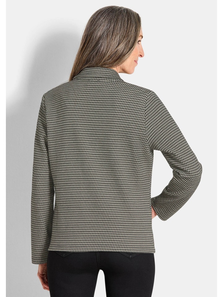 Пиджак свободного покроя, напоминающий рубашку, идеально подходит для многослойного ношения в качестве верхней рубашки! Изящный узор гусиная лапка в минималистичном дизайне открывает множество возможностей для комбинирования. Отложной воротник, планка с металлическими пуговицами и длинные рукава. Передняя часть с разделительными швами и встроенными карманами. Прямые нижние края. Удобна в носке благодаря эластичному трикотажу с добавлением хлопка и вискозы. Длина: около 64 см для размера 46, около 61 см для размера 23.