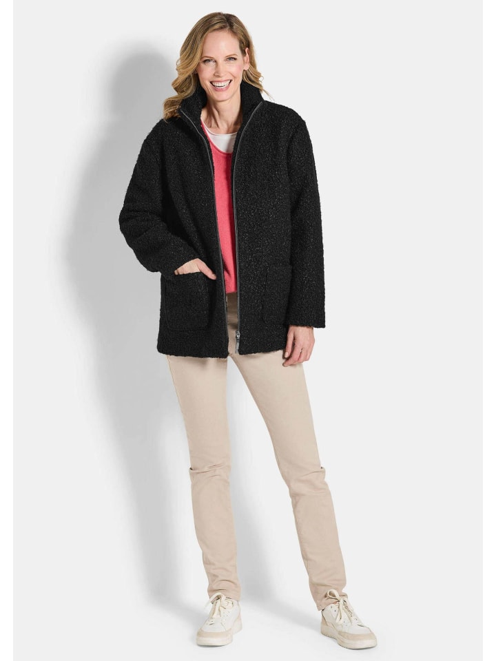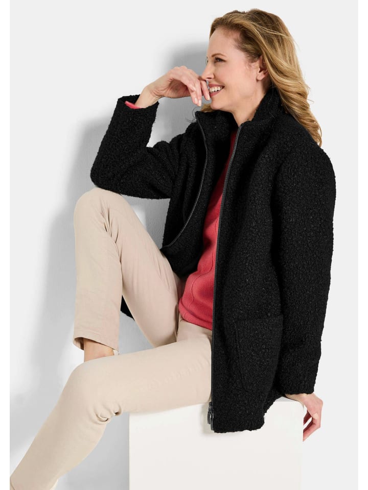Куртка в модном стиле тедди. Изготовлена из мягкого, уютного материала с воротником-стойкой, который также можно отогнуть. Плечи слегка спущены, крой подчеркивает фигуру и обеспечивает максимальный комфорт. Двусторонняя молния с декоративной окантовкой, два накладных кармана и два внутренних кармана обеспечивают функциональность и вместительность. Подкладка из элегантно мерцающего атласа искусно завершает образ. Длина: около 76 см для размера 46, около 72 см для размера 50. 23.