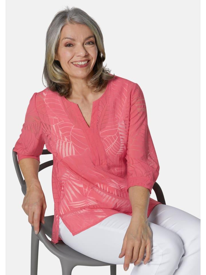 Блуза Burnout из легкой, воздушной ткани. Очаровательный узор с листьями создает эффектный акцент и, в сочетании с игрой прозрачных и плотных участков, создает захватывающий образ. Изящный вырез горловины, рукава длиной 3/4 и вытачки на груди. Боковые разрезы обеспечивают свободу движений. Длина: около 73 см для размера 46, около 69 см для размера 23.