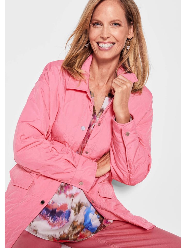 Куртка-рубашка с изысканным стеганым узором. Благодаря легкой подкладке эта модель идеально подходит для демисезонного ношения или прохладных летних вечеров. Характерные детали куртки-рубашки: свободный крой, спущенные плечи, закругленный низ и застежка на кнопки. Длинные рукава с манжетами и застежкой на кнопки. Длина: около 79 см для размера 46, около 75 см для размера 23.