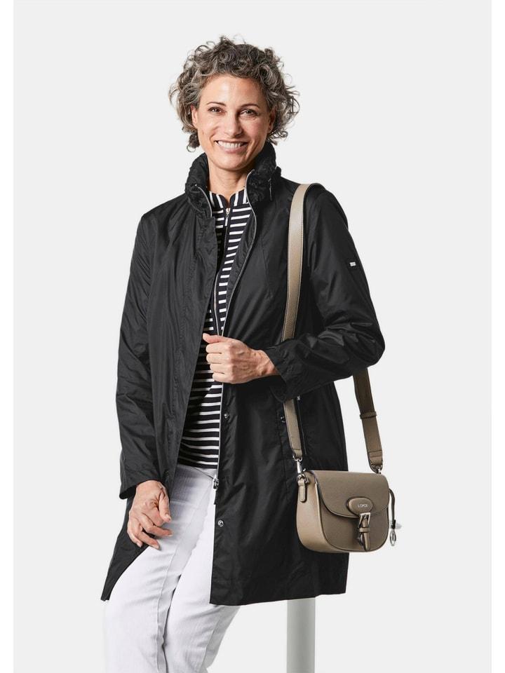 Длинная куртка с утонченным А-образным кроем и эксклюзивной легкой подкладкой: матовый, изысканный блеск придает этому функциональному, ветро- и дождезащитному компаньону элегантный шарм. Капюшон скрыт в воротнике, который также отделан модными сборками для удобной посадки. Застежка на молнию и кнопку, два декоративных клапана, карманы на молнии и внутренние карманы на подкладке. Эта модель чрезвычайно легкая и дышащая, ее также можно носить поверх блейзера. Длина около 93 см для размера 46, около 89 см для размера 23.