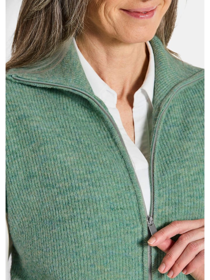 Вязаный жилет в стиле пуловера! Свободный крой со спущенными плечами идеально подходит для блузки или рубашки. Благодаря потайной молнии с трикотажной резинкой на подкладке жилет можно носить как расстегнутым, так и застегнутым. Мягкий широкий воротник позволяет носить его как водолазку, так и отложным воротником. Изготовлен из легкой в уходе смесовой пряжи с меланжевым эффектом, а мелкая резинка придает жилету уютный и комфортный вид. Длина: около 65 см для размера 46, около 61 см для размера 23. - Свободный свободный крой - идеально подходит для многослойной одежды. - Большой ребристый воротник с отложным воротником. - Мелкая резинка с меланжевым эффектом. Состав: - 76% полиэстер, - 15% полиамид, - 6% шерсть, - 3% эластан.