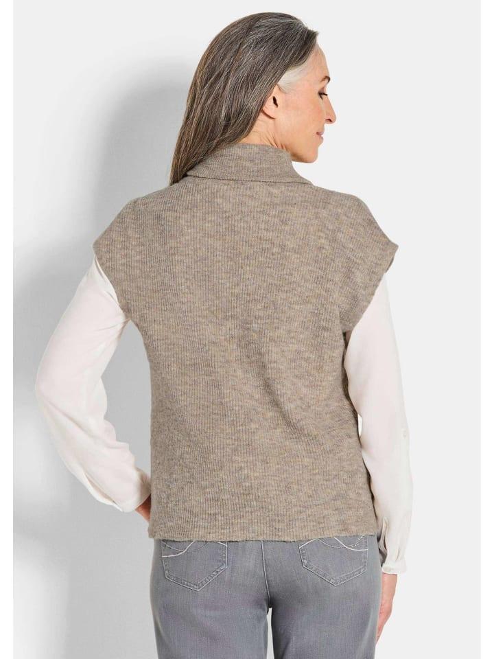 Вязаный жилет в стиле пуловера! Свободный крой со спущенными плечами идеально подходит для блузки или рубашки. Благодаря потайной молнии с трикотажной резинкой на подкладке жилет можно носить как расстегнутым, так и застегнутым. Мягкий широкий воротник позволяет носить его как водолазку, так и отложным воротником. Изготовлен из легкой в уходе смесовой пряжи с меланжевым эффектом, а мелкая резинка придает жилету уютный и комфортный вид. Длина: около 65 см для размера 46, около 61 см для размера 23. - Свободный свободный крой - идеально подходит для многослойной одежды. - Большой ребристый воротник с отложным воротником. - Мелкая резинка с меланжевым эффектом. Состав: - 76% полиэстер, - 15% полиамид, - 6% шерсть, - 3% эластан.