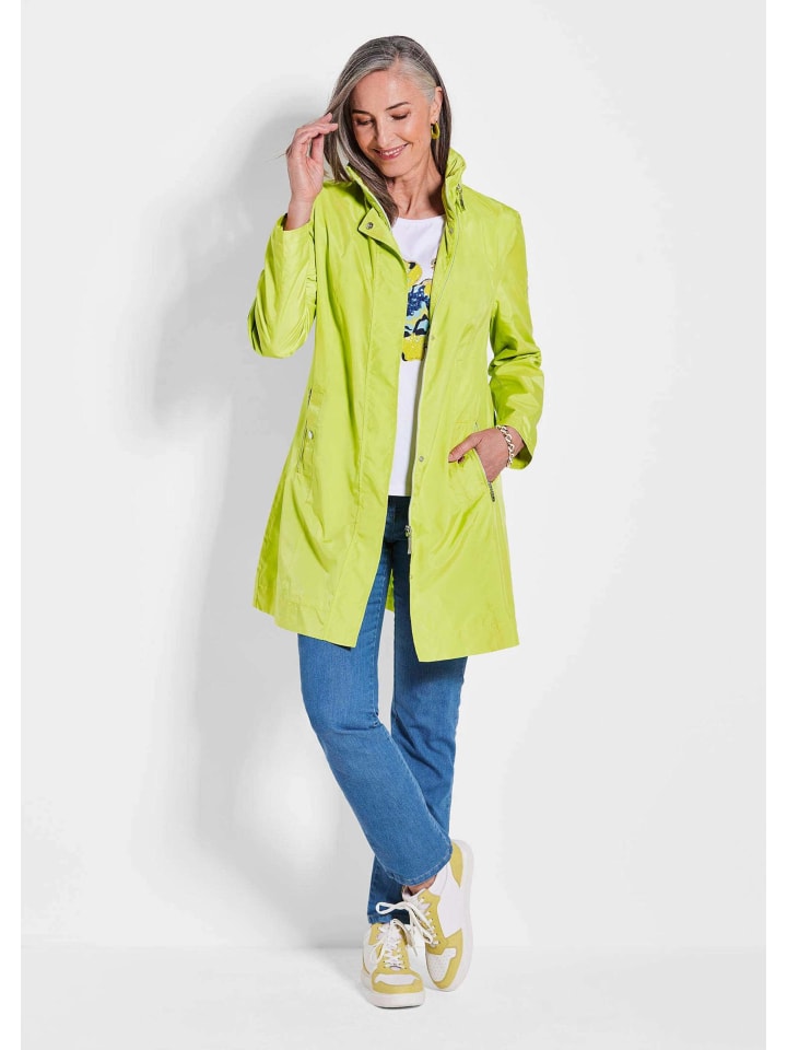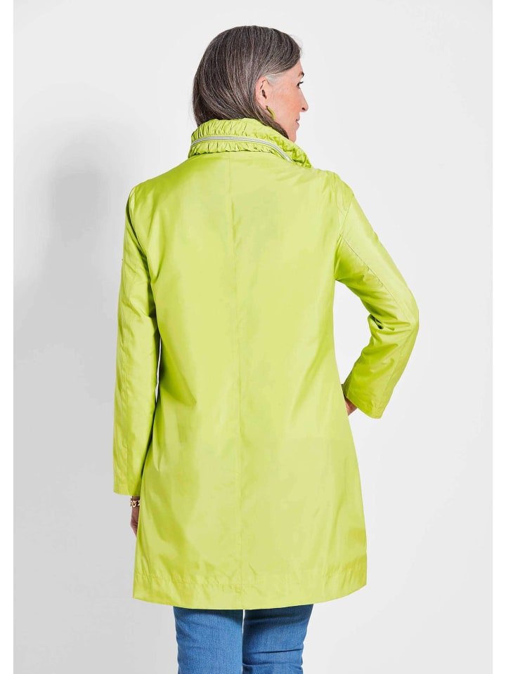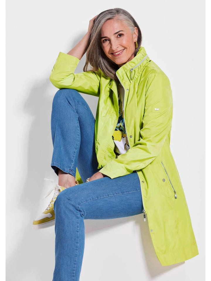 Длинная куртка с утонченным А-образным кроем и эксклюзивной легкой подкладкой: матовый, изысканный блеск придает этому функциональному, ветро- и дождезащитному компаньону элегантный шарм. Капюшон скрыт в воротнике, который также отделан модными сборками для удобной посадки. Застежка на молнию и кнопку, два декоративных клапана, карманы на молнии и внутренние карманы на подкладке. Модель чрезвычайно легкая и дышащая, ее также можно носить поверх блейзера. Длина около 93 см для размера 46, около 89 см для размера 23.