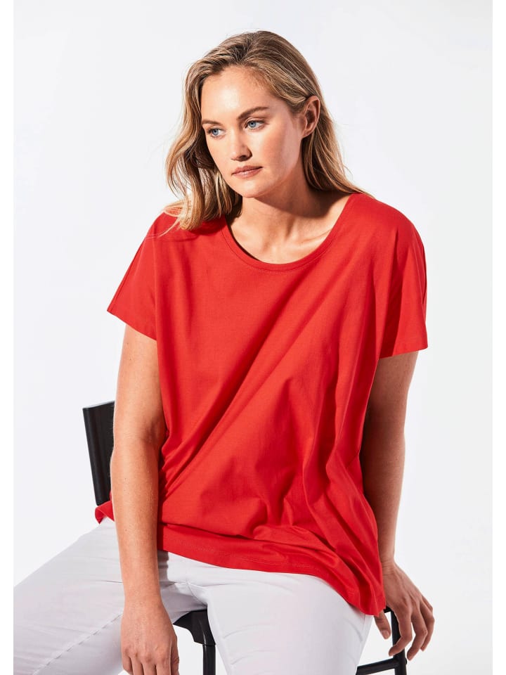Рубашка с круглым вырезом и узкой вставкой. Эта современная классика отличается спущенными плечами, которые выгодно прикрывают плечо. Прямой, свободный крой и длина до бедер обеспечивают максимальную свободу движений. Двойная строчка по низу не только добавляет модный штрих, но и демонстрирует высокое качество изготовления. Рубашка изготовлена из чистого хлопка для максимального комфорта в теплые летние дни. Длина около 68 см для размера 46/48.