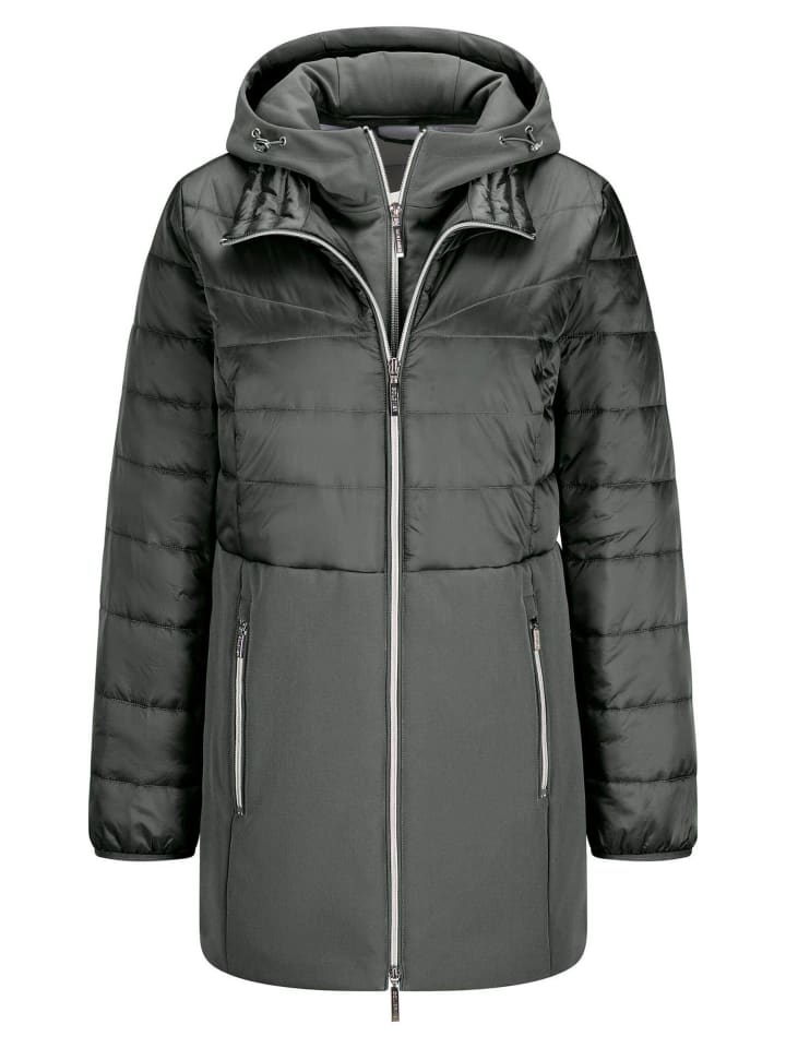 Стеганое пальто со вставкой из софтшелла, которую можно снять при необходимости! Нижняя часть стеганого пальто также выполнена из водоотталкивающего софтшелла. Слегка приталенный фасон, практичная длина с двухсторонней молнией. Капюшон с эластичными манжетами, карманы на практичных молниях. Стеганая подкладка контрастного цвета добавляет визуальные акценты! Длина: около 83 см для размера 46, около 79 см для размера 23.