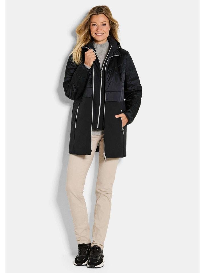 Стеганое пальто со вставкой из софтшелла, которую можно снять при необходимости! Нижняя часть стеганого пальто также выполнена из водоотталкивающего софтшелла. Слегка приталенный фасон, практичная длина с двухсторонней молнией. Капюшон с эластичными манжетами, карманы на практичных молниях. Стеганая подкладка контрастного цвета добавляет визуальные акценты! Длина около 83 см для размера 46, около 79 см для размера 23.