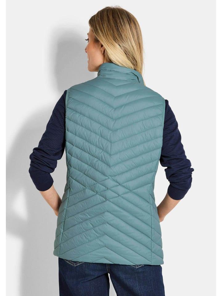 Стеганый жилет с настоящим пухом. Наполнитель из пуха и пера делает эту модель особенно легкой, но теплой - идеально подходит для межсезонья или прохладных вечеров. Изысканная диагональная стежка на талии создает стройнящий образ. Карманы и проймы на резинке. Застегивается на практичную двухстороннюю молнию. Ваша новая любимая вещь, впечатляюще легкая, но прочная! Длина около 69 см для размера 46, около 65 см для размера 23.