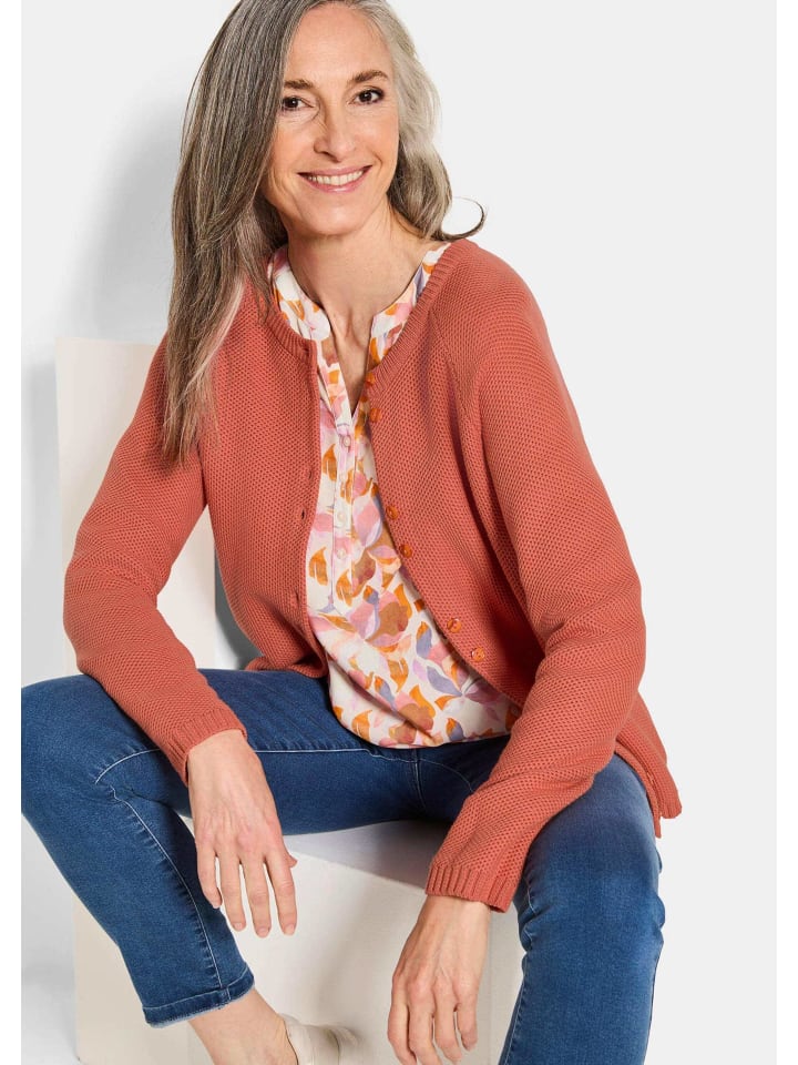 Кардиган из чистого хлопка. Текстурированная отделка пике придает однотонному изделию изысканность. Классический крой с длинными рукавами, круглым вырезом с отделкой резинкой и узким низом в резинку. Планка с пуговицами отделана трикотажной резинкой, а пуговицы в тон, расположенные парами, демонстрируют тщательное внимание к деталям. Длина: около 65 см для размера 46, около 61 см для размера 23.