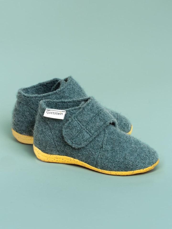 Идеальный спутник для яслей и детского сада. Верх выполнен из чистой шерсти, а боковая застежка-липучка позволяет адаптировать тапочки к любой форме стопы. Мягкая резиновая подошва гарантирует сцепление и безопасность.