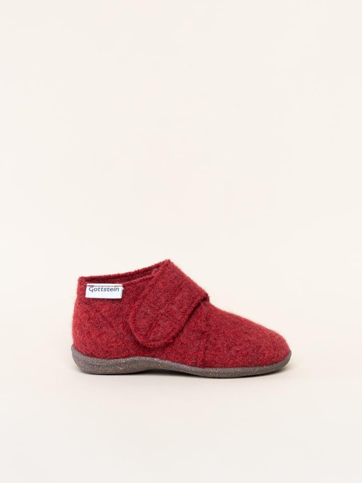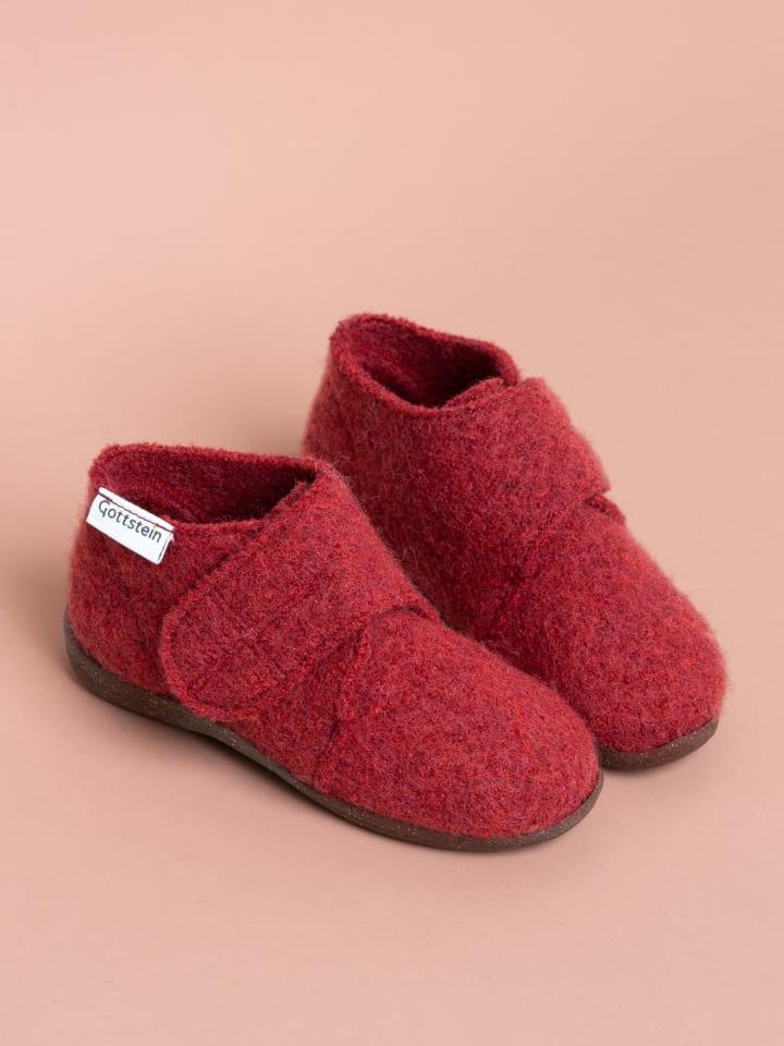 Идеальный спутник для яслей и детского сада. Верх выполнен из чистой шерсти, а боковая застежка-липучка позволяет адаптировать тапочки к любой форме стопы. Мягкая резиновая подошва гарантирует сцепление и безопасность.
