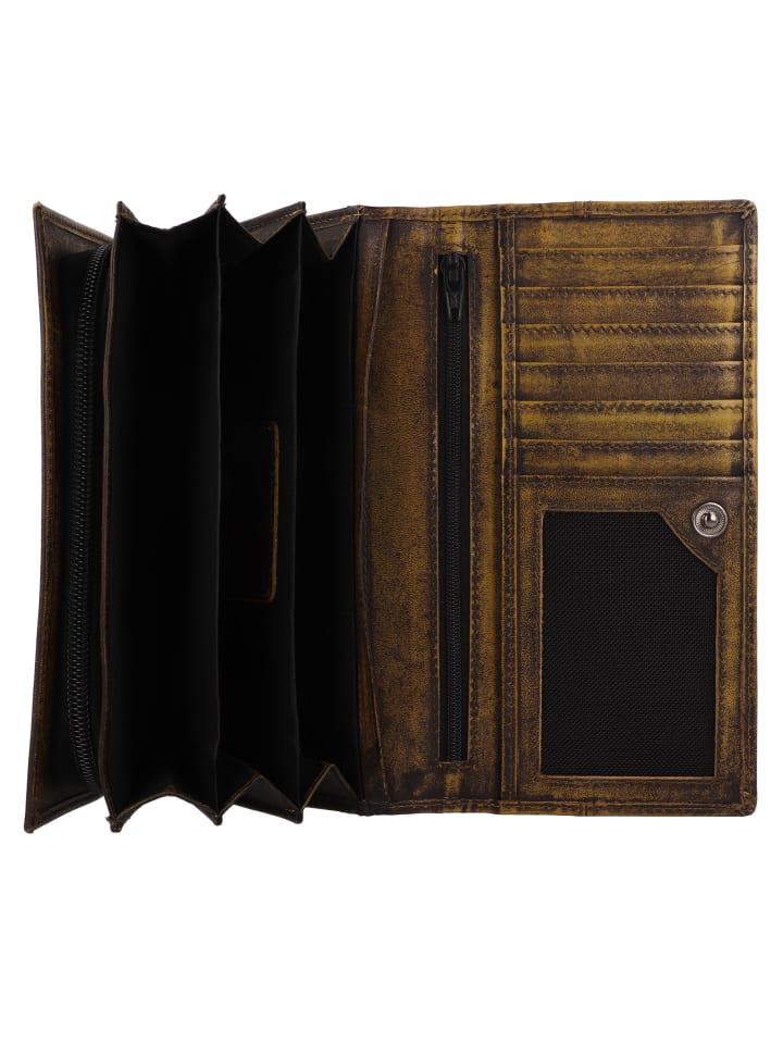 Настоящая приманка для глаз: женский кошелек Greenburry из серии Destressed! Идеально подходит для модниц: 6 отделений для кредитных карт, 1 отделение для монет, 3 отделения для купюр, 1 накладной карман и 1 карман для удостоверения личности. Прочная застежка-кнопка обеспечивает дополнительную безопасность. Изготовленный полностью из высококачественной кожи, он добавляет элегантности. Ваши данные также защищены: благодаря встроенной RFID-защите ваши кредитные карты защищены от кражи. Не откладывайте и пополните свой портфель аксессуаров этим стильным и функциональным женским кошельком!