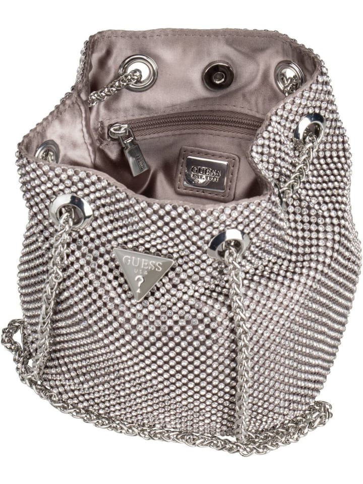 Экстравагантная вечерняя сумочка Guess из сверкающих стразов и алюминия - сверкающая приманка для глаз, которая волшебным образом притягивает все взгляды.