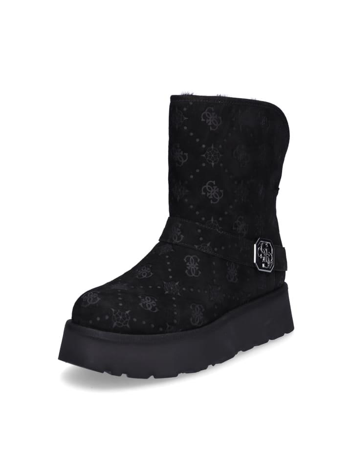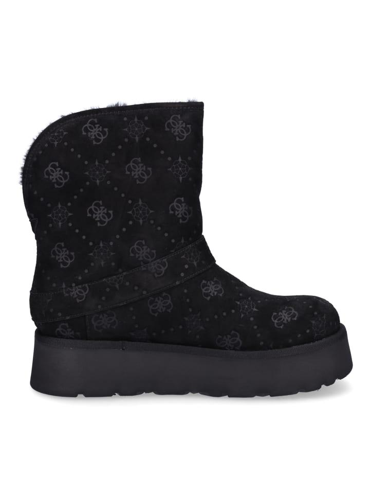 Женские ботинки Guess Dolsay из черного синтетического материала с принтом логотипа, на платформе и с удобной синтетической подкладкой.