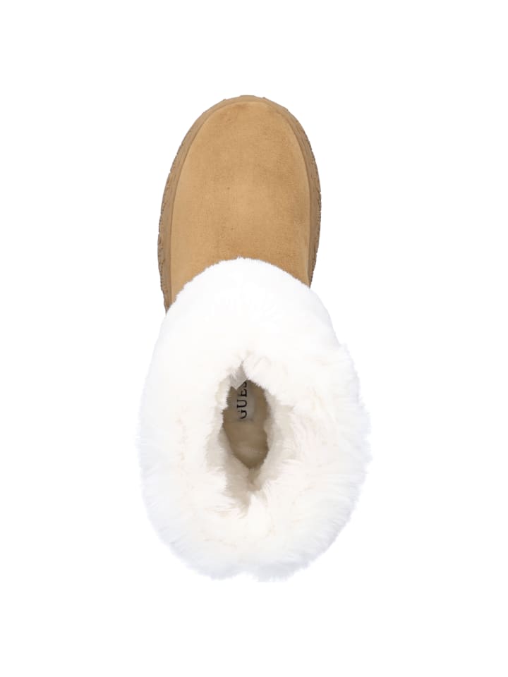 Женские ботинки Guess из искусственной кожи коньячного цвета с утепленной текстильной подкладкой и воротником из искусственного меха.