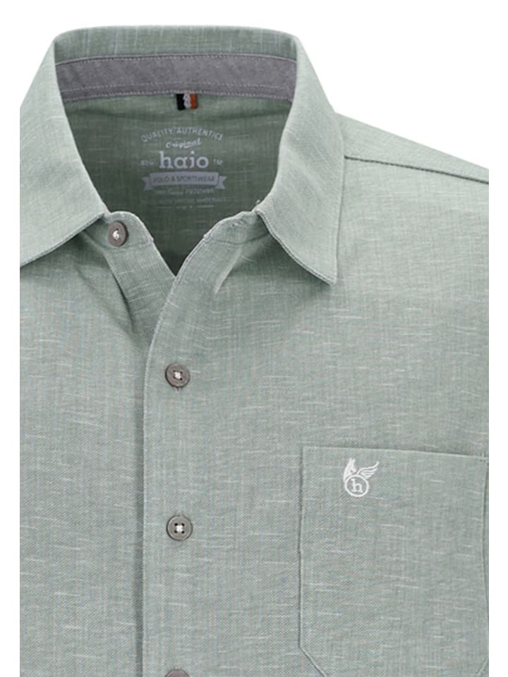 Мужская рубашка Hajo впечатляет короткими рукавами и планкой на пуговицах по всей длине. Практичный нагрудный карман дополняет непринужденный дизайн. Классический воротник Kent и классический крой обеспечивают стильную и современную посадку. Модный принт по всей поверхности рубашки придает ей свежий и современный вид. Изготовленная из чистого хлопка, она дышащая и приятная для кожи. Неброский логотип на боковом шве добавляет тонкий акцент бренда. Декоративная строчка на спине подчеркивает стильный вид рубашки. Высокий уровень комфорта делает ее идеальным вариантом для отдыха, отпуска или неформальных пятниц в офисе. Ее можно легко сочетать с джинсами, брюками чинос или шортами, создавая универсальные образы. Модная базовая модель для мужчин, которые ценят комфорт и стиль.