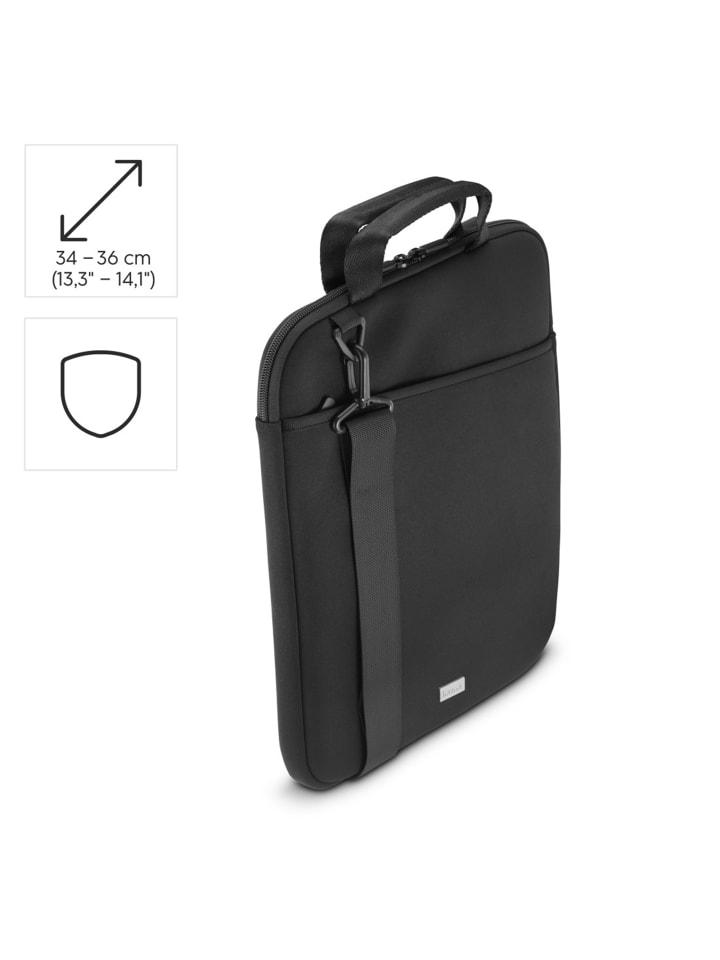 Сумка изготовлена из легкого в уходе, водоотталкивающего и приятного на ощупь неопренового материала. Вместительный передний карман на молнии вмещает аксессуары и личные вещи, а накладной карман с окошком надежно хранит визитки или небольшие заметки.