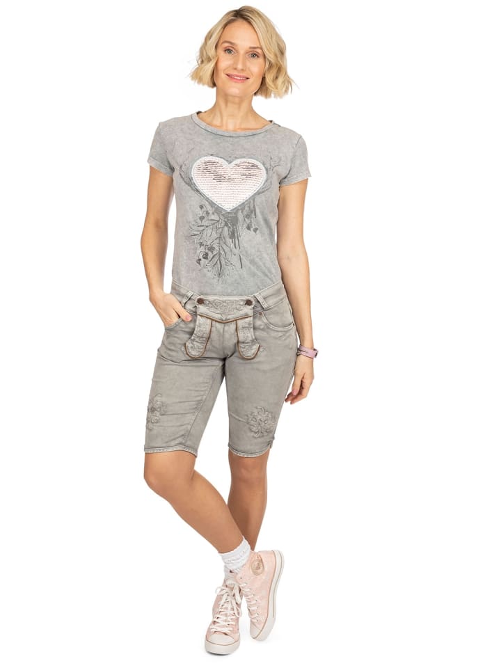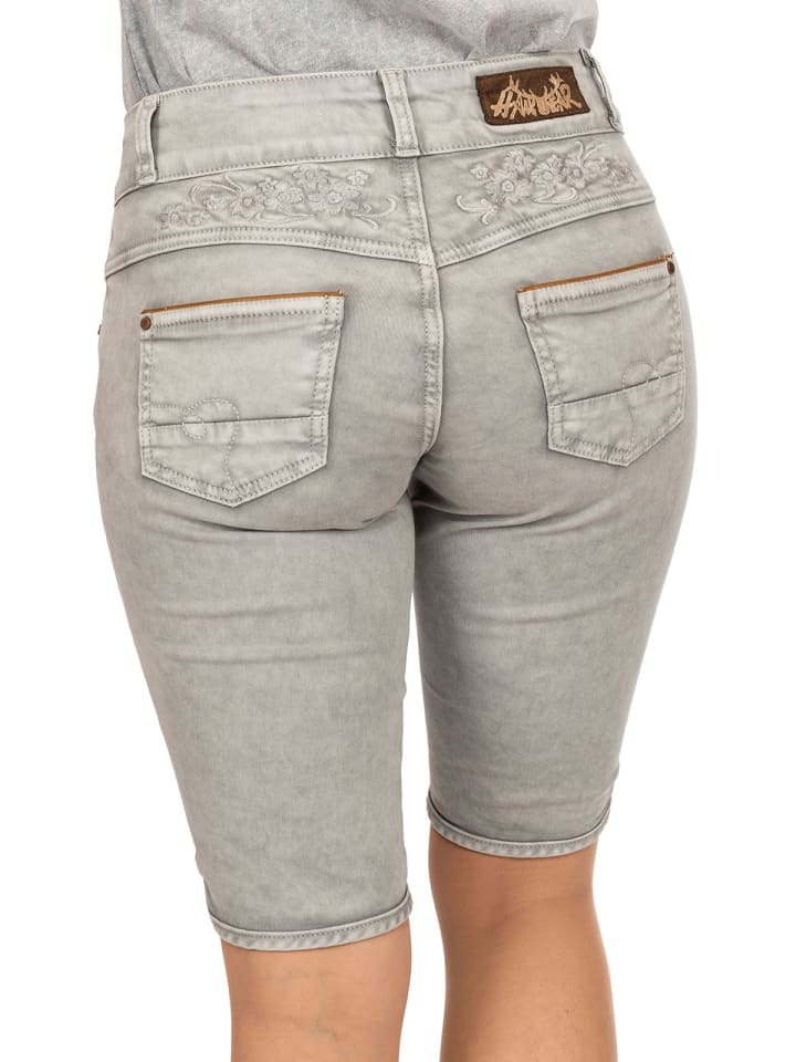 Культовые джинсы-бермуды Ovida светло-серого цвета. Модель Ovida от Hangowear представляет собой сочетание джинсов и традиционных брюк. Добавление эластана обеспечивает облегающую, но эластичную посадку этих хлопковых брюк. Особенностью этой светло-серой модели являются типичные традиционные элементы. Гулька и украшения - истинно баварские.