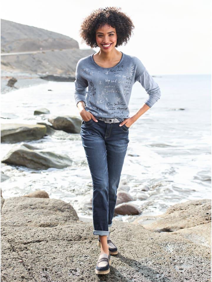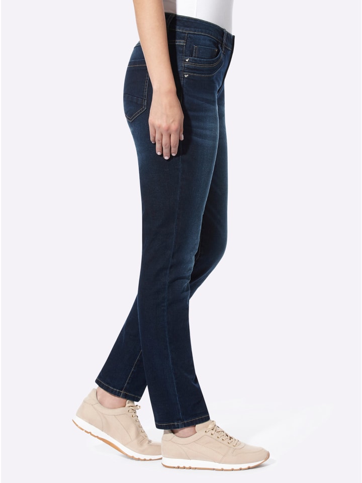 Современные джинсы с пятью карманами из инновационной эластичной ткани. С заклепками и пуговицей в форме сердца. Стандартная посадка. Комфортная посадка. Ширина до щиколотки примерно 34 см. Поддерживает инициативу Хлопок, сделанный в Африке.