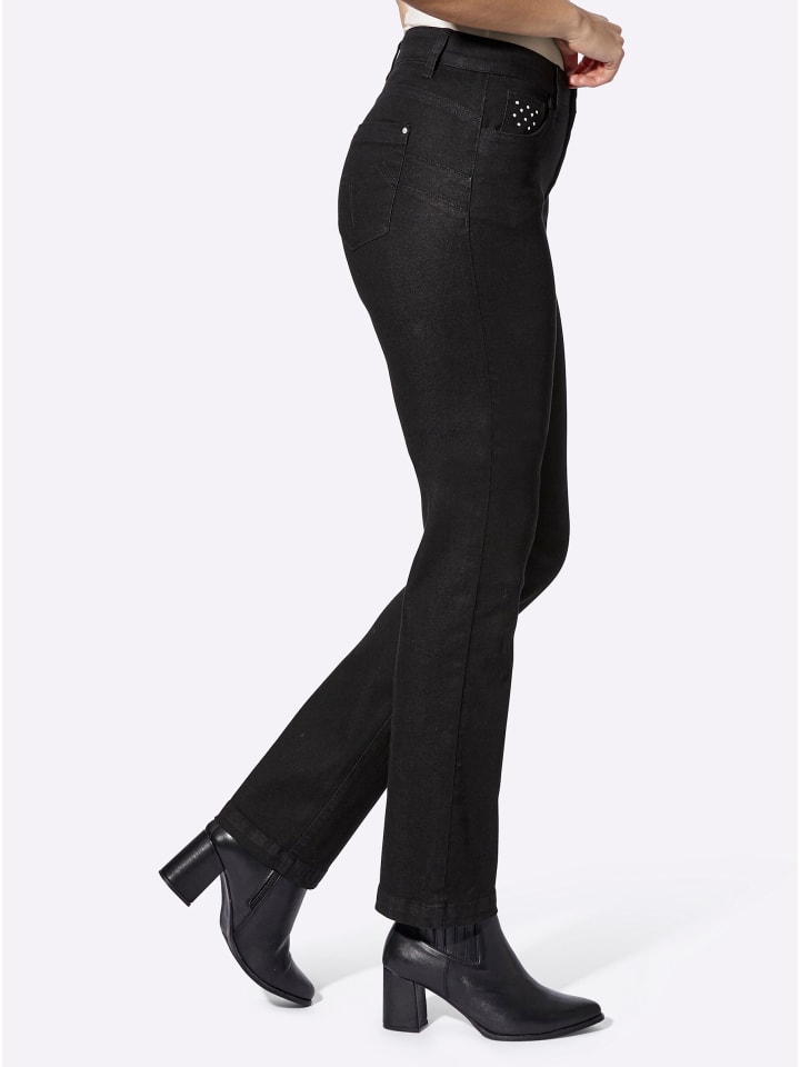 Брюки с эффектом пуш-ап для отличной посадки. 5 карманов с заклепками на кармане для монет и декоративной пуговицей на поясе. Посадка стандартная. Зауженный крой. Слегка расклешенные штанины, ширина щиколотки примерно 42 см. Поддерживает инициативу Сделано в Африке (Cat. Made in Africa).