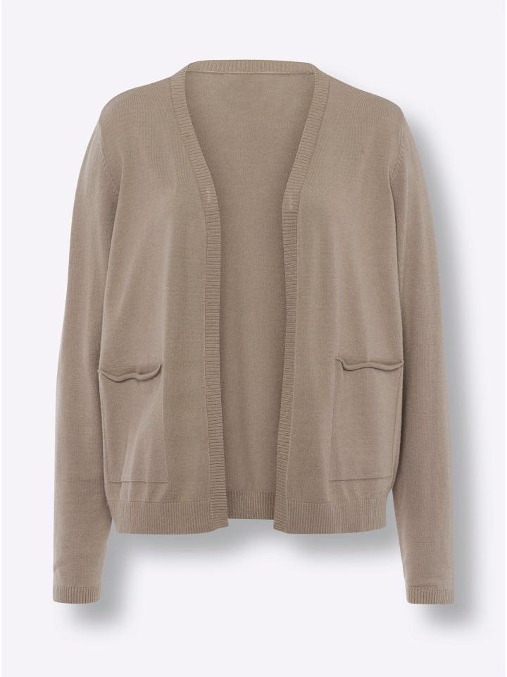 Кардиган из мягкой тонкой пряжи с вискозой ECOVERO от Lenzing. Свободный крой с открытым передом, длинными рукавами и ребристыми манжетами. Карманы с подвернутым краем.