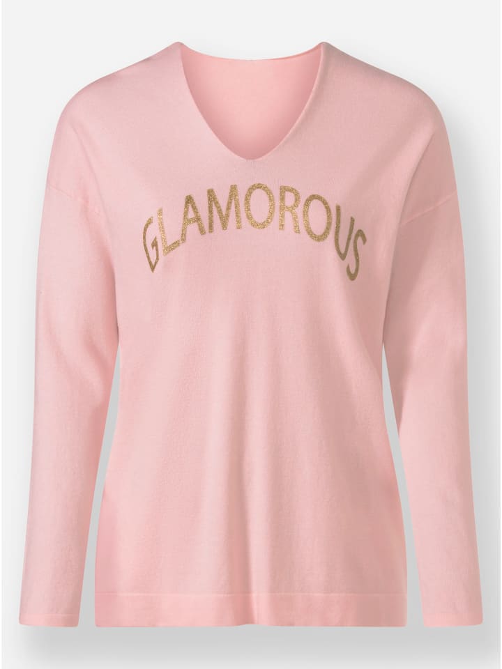 Эффектный свитер с блестящей надписью. V-образный вырез, непринужденно спущенные плечи, длинные рукава и эластичные манжеты. Изготовлен из вискозы ECOVERO от Lenzing.